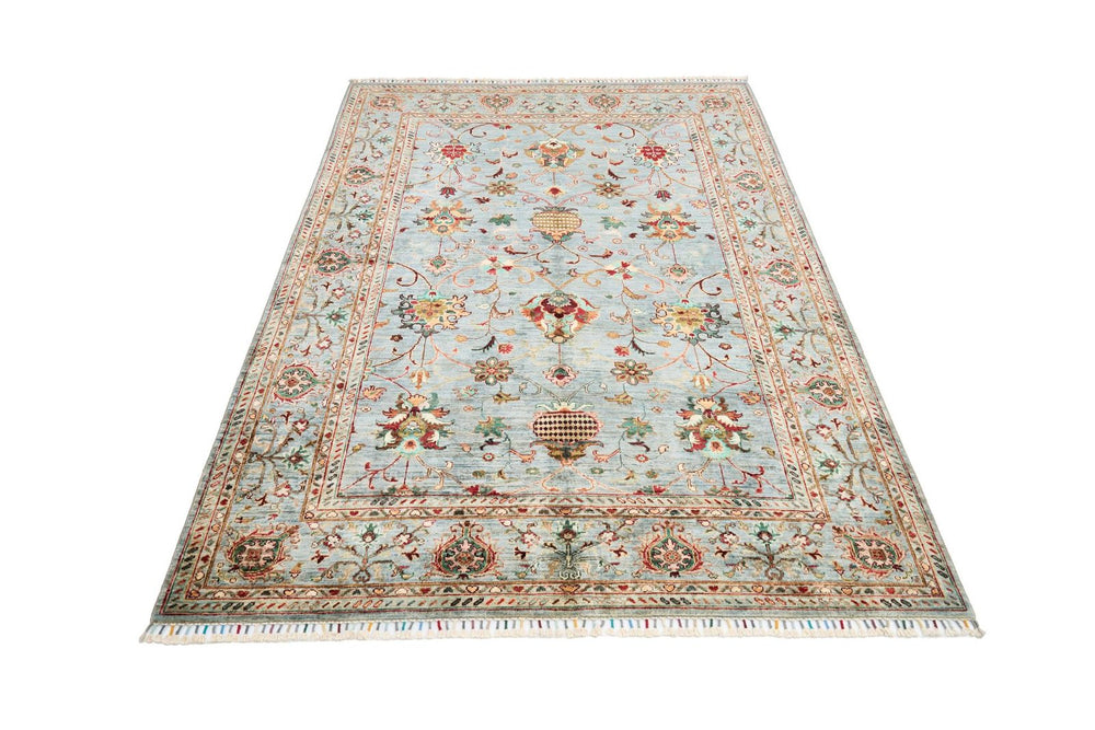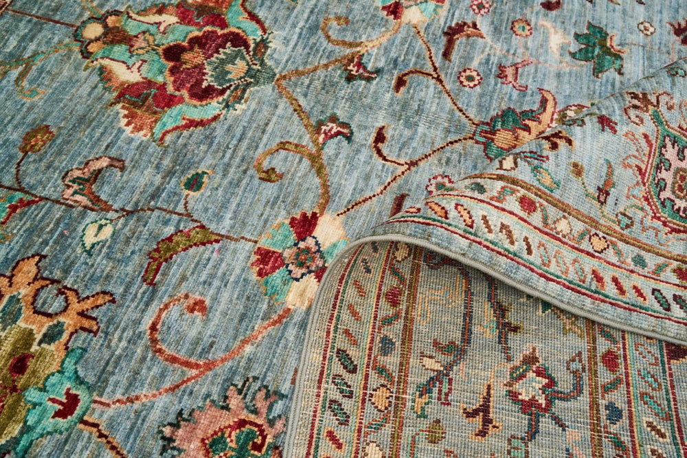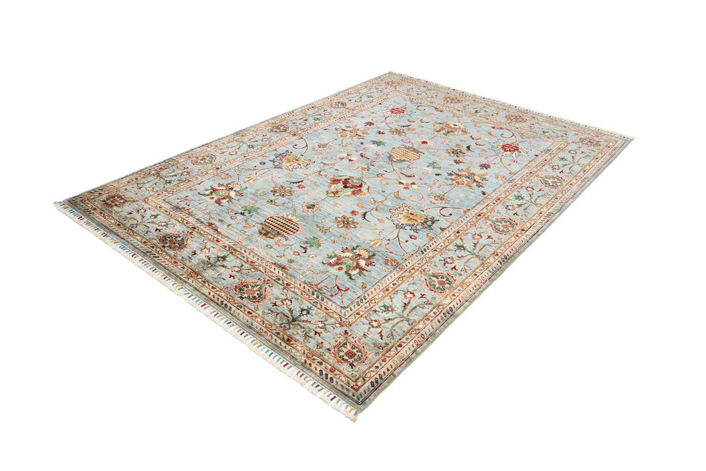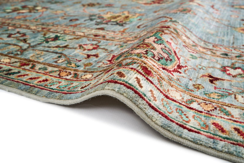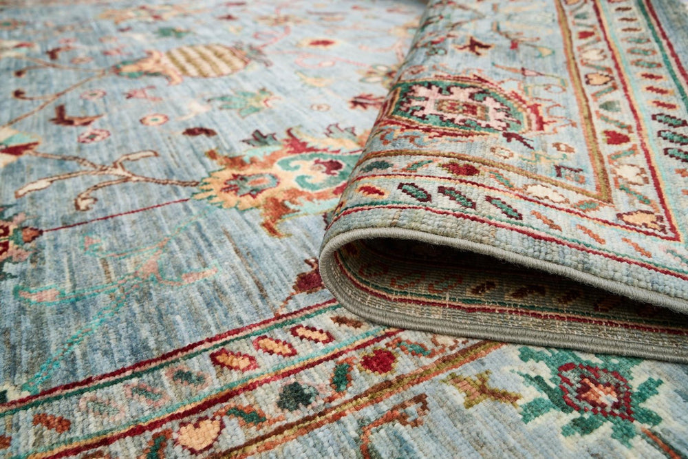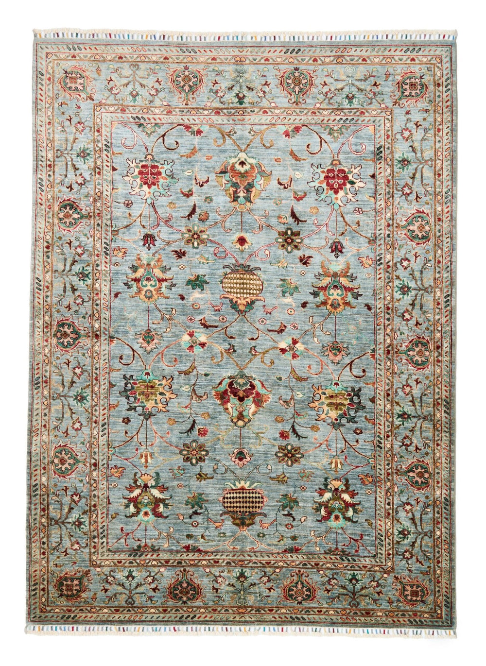 Yün ve pamuk karışımı dokusu sayesinde hem sıcak hem de sağlıklı bir kullanım sağlayan bu halı, ince hav yüksekliği (0-6 mm) ile zarif bir duruş sergiler. 28-35 arası dokuma sıklığı, bu el dokuması halıyı hem sağlam hem de estetik açıdan doyurucu bir hale getirir. Düz saçakları ve klasik dikdörtgen formu, sade zarafeti kusursuz bir şekilde yansıtır.