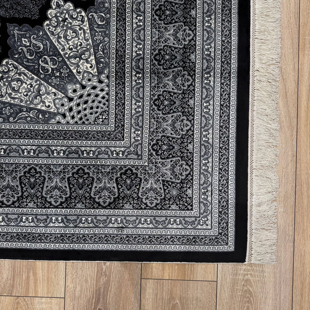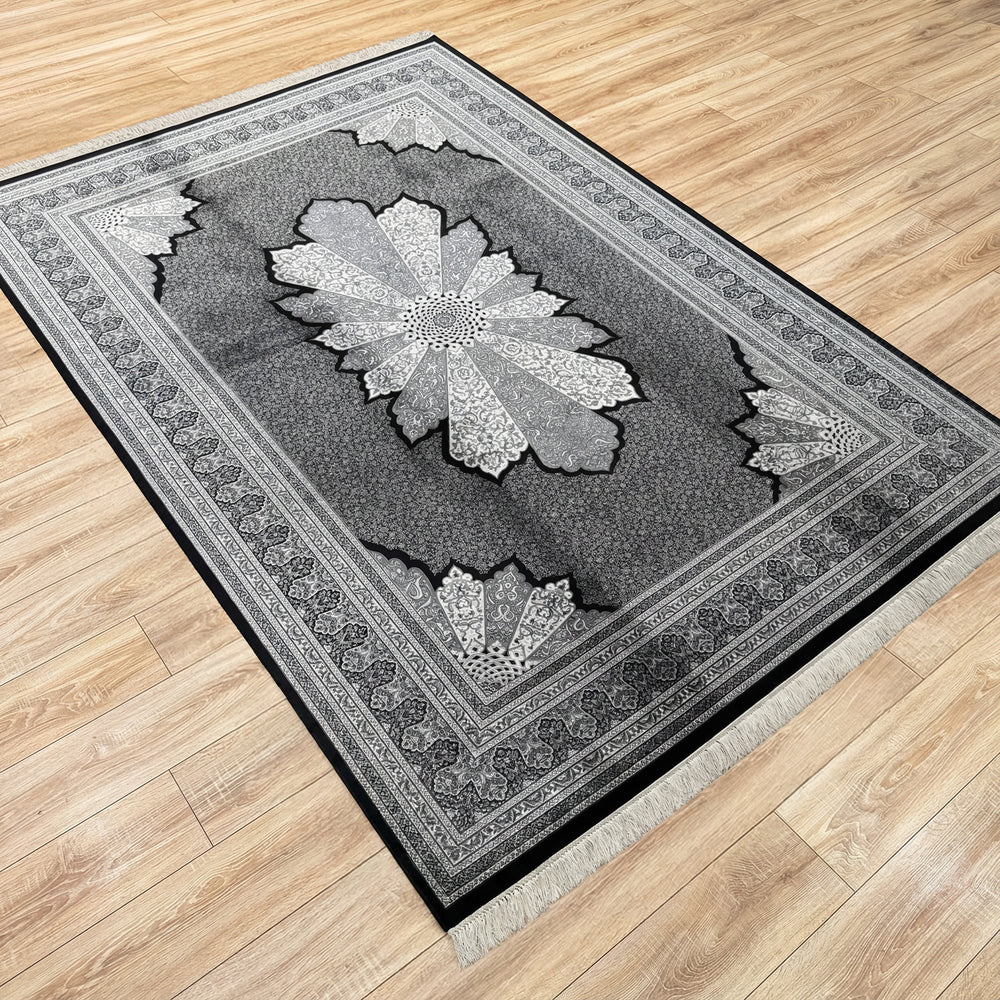 Makine İpek Siyah-Gri Halı 1166D için adedi artır