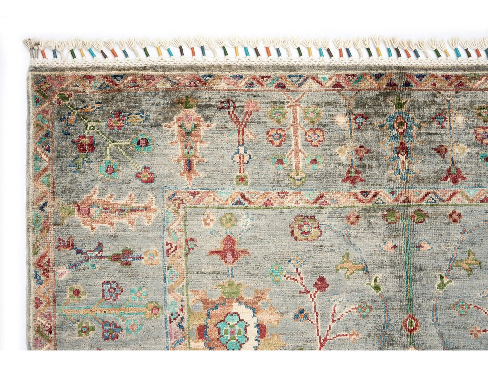 Öğretmenler Halı El Dokuma İnsaf Bahtiyari ÖÇİB557, yeşil ve mavi tonlarının uyumlu birleşimi ile dikkat çeker. %100 kök boya kullanımı, renklerin tazeliğini uzun süre korur. Yün ve pamuk karışımı malzeme, yumuşaklık ve dayanıklılık sunar. 6-12 mm hav yüksekliği, rahat bir yüzey sağlar. Düğüm saçaklar ise geleneksel işçiliği vurgular ve estetik bir görünüm yaratır. Bu halı El Dokuma Halılar koleksiyonlarına güzel bir katkı olacaktır.