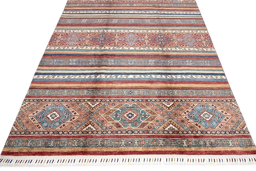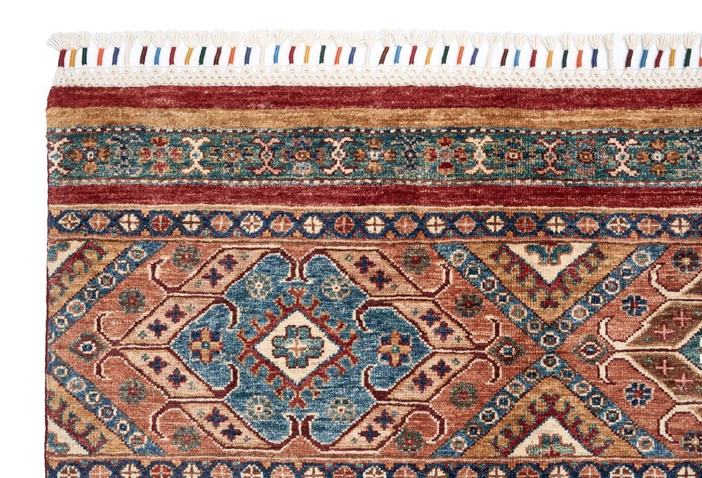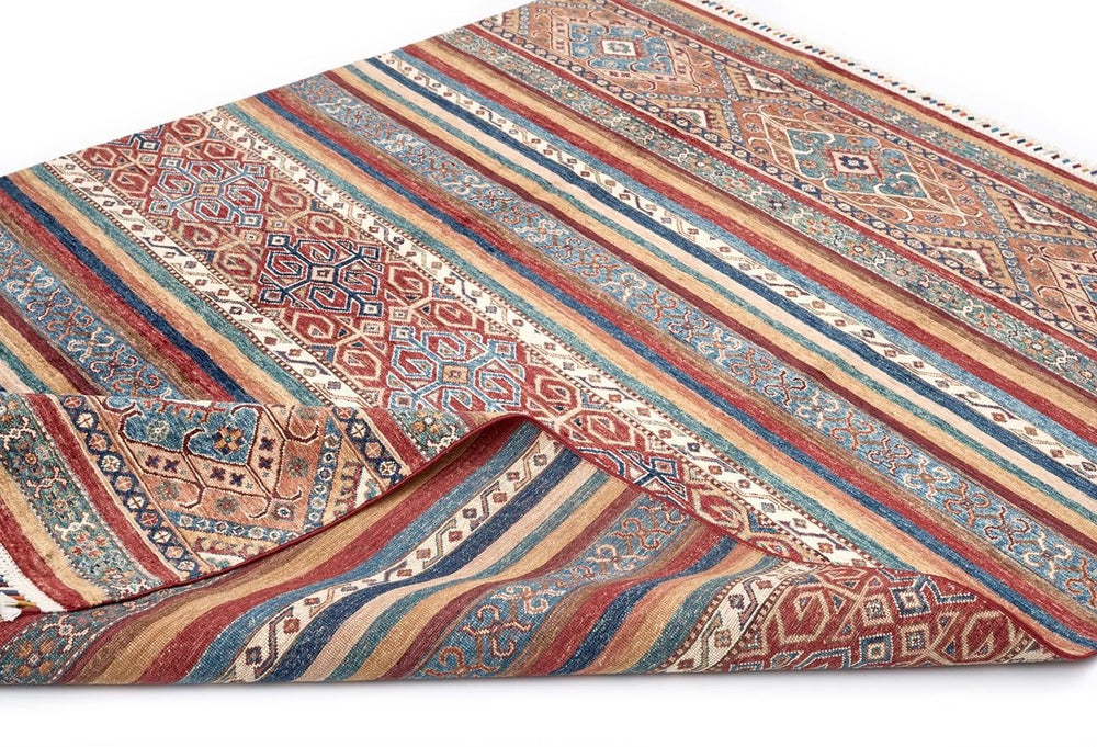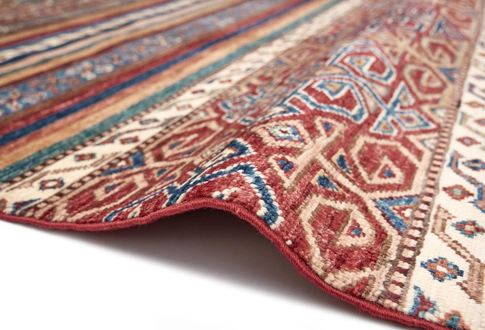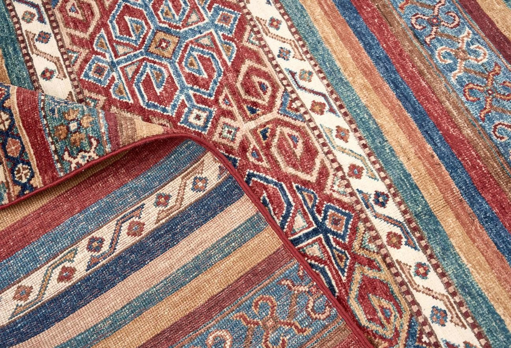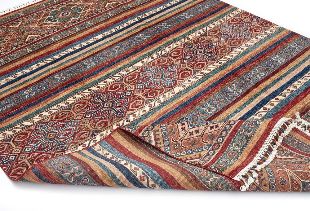 Öğretmenler Halı El Dokuma İnsaf Bahtiyari ÖÇİB592, geleneksel dokuma yöntemleriyle üretilmiş ve doğal kök boyalarla renklendirilmiştir. %100 yün ve pamuk karışımı ile yapılan bu halı, sağlıklı ve dayanıklı bir kullanım sunar. Renkli ve dinamik desenleri, özellikle geleneksel iç mekanlarda harika bir uyum sağlar. Yüksekliği 6-12 mm arasında olan havı ile yumuşak bir dokuya sahiptir ve uzun süreli kullanımda bile konfor sağlar. Saçak tipi örgü olup, bu halı, evinizde sıcak bir atmosfer yaratır. El dokuma halıları, eşsiz el işçiliği ile her zaman benzersizdir. Bu halının uzun yıllar boyunca rengini ve şeklini koruyarak kullanabilirsiniz. Ayrıca, Afgan Kilimi ve Anadolu Kilimleri gibi benzer geleneksel halılarla da uyumlu bir atmosfer oluşturabilirsiniz.