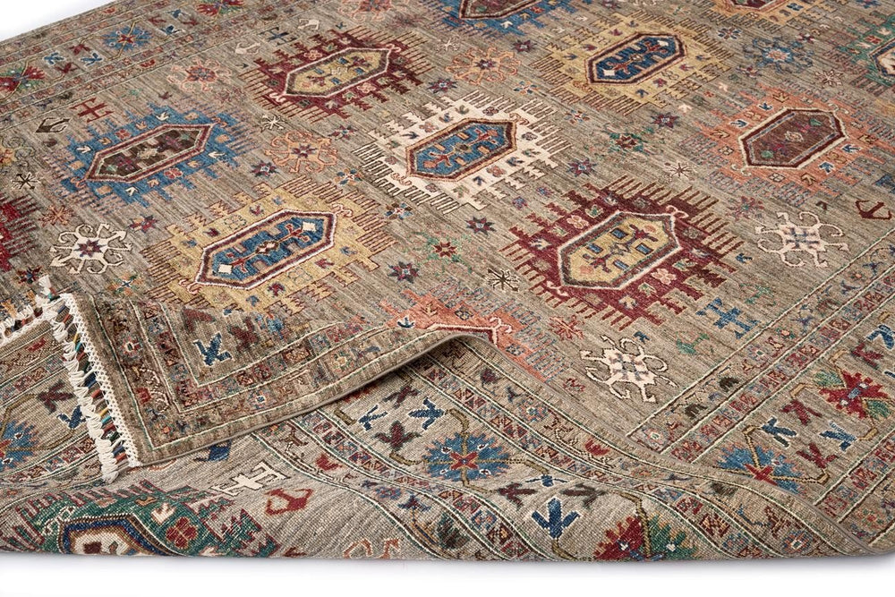 Kahverengi tonlarındaki Öğretmenler Halı El Dokuma İnsaf Bahtiyari ÖÇİB603, zarif ve modern bir tasarıma sahiptir. %100 kök boya kullanılarak üretilmiş bu halı, yün ve pamuk karışımı ile yüksek kaliteli bir dokuma sunar. Dokuma sıklığı 28-35 arasında olup, her detayda ustalık ve özen barındırır. Yüksekliği 6-12 mm arasında değişen hav yapısı, ayaklarınızın altında yumuşak bir his bırakır. Örgü saçakları halının estetik görünümünü tamamlar ve farklı alanlarda mükemmel uyum sağlar. Bu halı, el dokuma halıların sunduğu doğal şıklığı her mekanda hissedeceğiniz şekilde tasarlanmıştır. Konfor ve estetiği bir arada sunan bu halı, el dokuma halı modelleri ile uyumlu bir seçenek oluşturur. Ayrıca bambu halılar da ilginizi çekebilir.