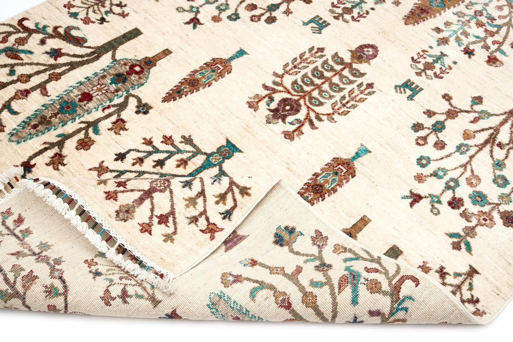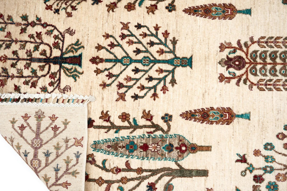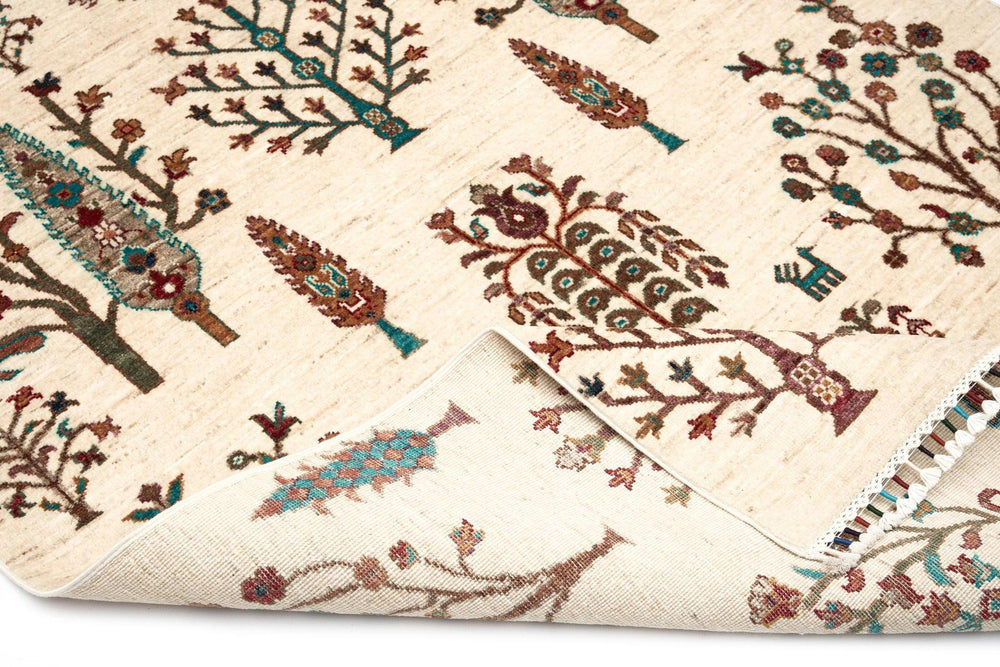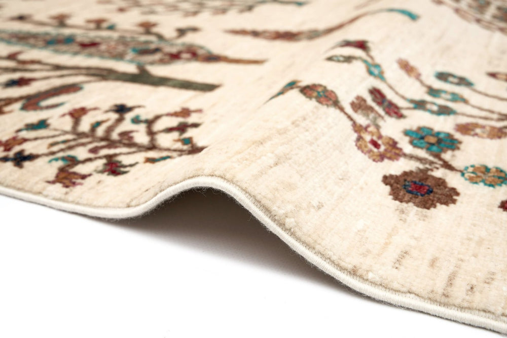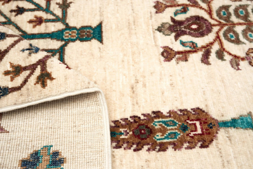 Yün ve pamuk karışımı, hem konforlu hem de uzun süreli kullanım sağlar. Kök boyayla yapılan renkler, zamanla solmaz ve canlılığını korur. El dokuma halıları, her biri ustalıkla yapılan işçilik ürünleridir ve her bir halı, benzersiz bir estetik sunar. Bu halıyı evinizde kullanarak hem şıklığı hem de kaliteyi bir arada bulabilirsiniz.