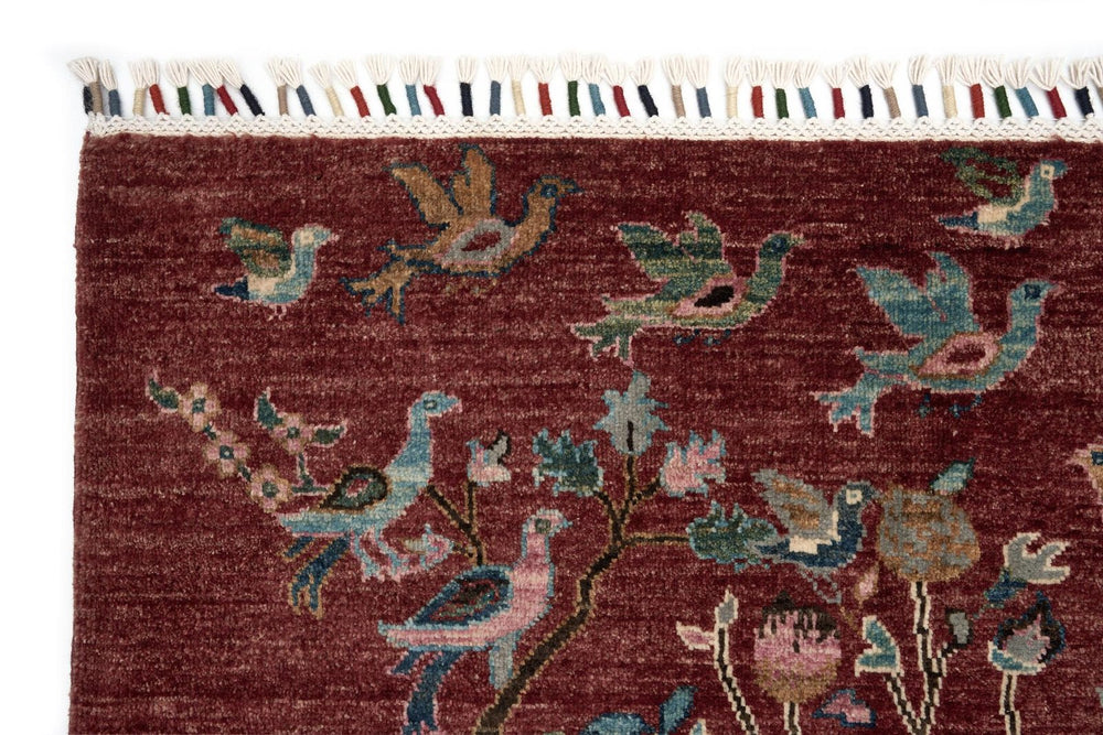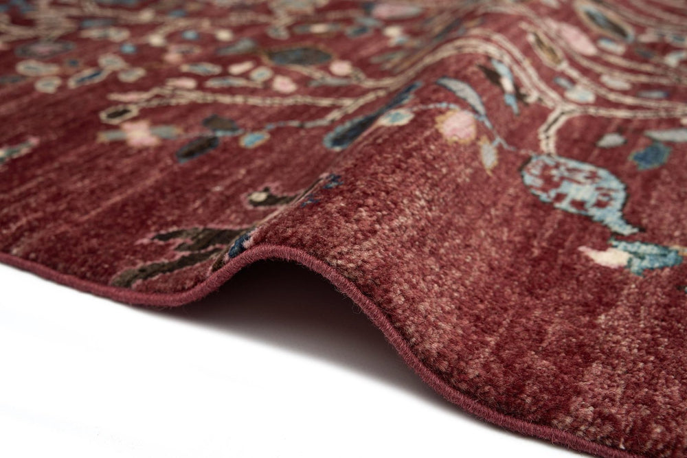 Bu halı, dikdörtgen şekliyle geniş alanlara uyum sağlar. Halı, mekanınızdaki atmosferi anında değiştirebilir. Desenin her bir bölümü, el işçiliğiyle özenle işlenmiştir. Kök boya ile elde edilen kırmızı renk, mekanınıza zarif bir hava katar. Geleneksel Anadolu halı motiflerinden ilham alınarak tasarlanmıştır, ancak modern bir dokunuşla zenginleştirilmiştir. Anadolu halıları gibi geleneksel desenlere sahip bu model, odalarınıza tarihi bir dokunuş katar.