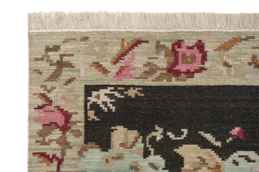 Öğretmenler Halı El Dokuma Hasel Karabağ ÖAHK746 modeli, çok renkli desenleriyle her mekâna uyum sağlar. Yün ve pamuk karışımı materyali, halıya yumuşaklık ve uzun ömürlülük kazandırır. %100 kök boya kullanılarak doğal renkler elde edilmiştir. Halı, 6-12 mm hav yüksekliği ile rahat bir kullanım sunar. 28-35 dokuma sıklığı ile sağlam bir yapı ortaya koyar. Dikdörtgen şekli ve düz saçakları, halıyı şık ve modern kılar. Halıyı, el dokuma kilimleri ile kombinleyebilirsiniz.