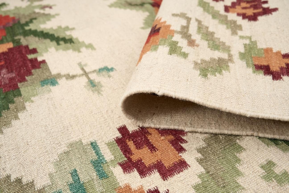 Öğretmenler Halı El Dokuma Hasel Karabağ ÖAHK773, dikkatle seçilen malzemeler ve geleneksel el dokuma teknikleriyle üretilmiştir. Yün ve pamuk karışımı iplikleri, doğal yapısıyla hem şıklık hem de dayanıklılık sağlar. %100 kök boya ile renklendirilen bu halı, uzun süre renk kaybı yaşanmaz. 6-12 mm arasında yüksek hav yapısı, rahat bir yürüyüş sağlar. Dokuma sıklığı 28-35 birim arasıdır ve ince işçiliğiyle uzun yıllar kullanılabilir. Saçak tipi ise düz saçaktır. Halınızda geleneksel ve modern çizgileri bir arada arıyorsanız, El Dokuma Halılar kategorisinde geniş bir seçenek bulabilirsiniz.
