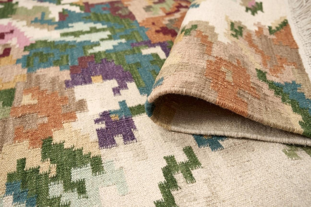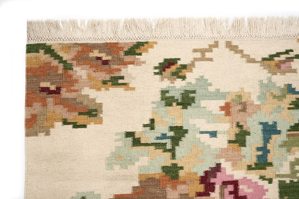 Öğretmenler Halı El Dokuma Hasel Karabağ ÖÇHK692 modeli, canlı renkleri ve zarif tasarımıyla göz kamaştırır. %100 kök boya kullanılarak elde edilen doğal renkler, halının uzun ömürlü olmasını sağlar. Yün ve pamuk karışımından üretilen halı, 6-12 mm hav yüksekliğiyle rahat bir kullanım sunar. 28-35 dokuma sıklığı sayesinde dayanıklıdır. Örgü saçakları, halının estetik görünüme katkı sağlar. El dokuma işlemi, her bir deseni benzersiz kılar. Bu halıyı, yol halıları ile mükemmel bir şekilde birlikte kullanabilirsiniz.