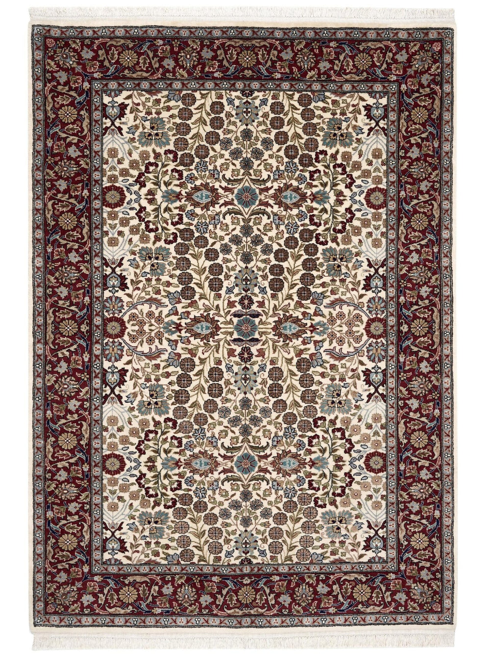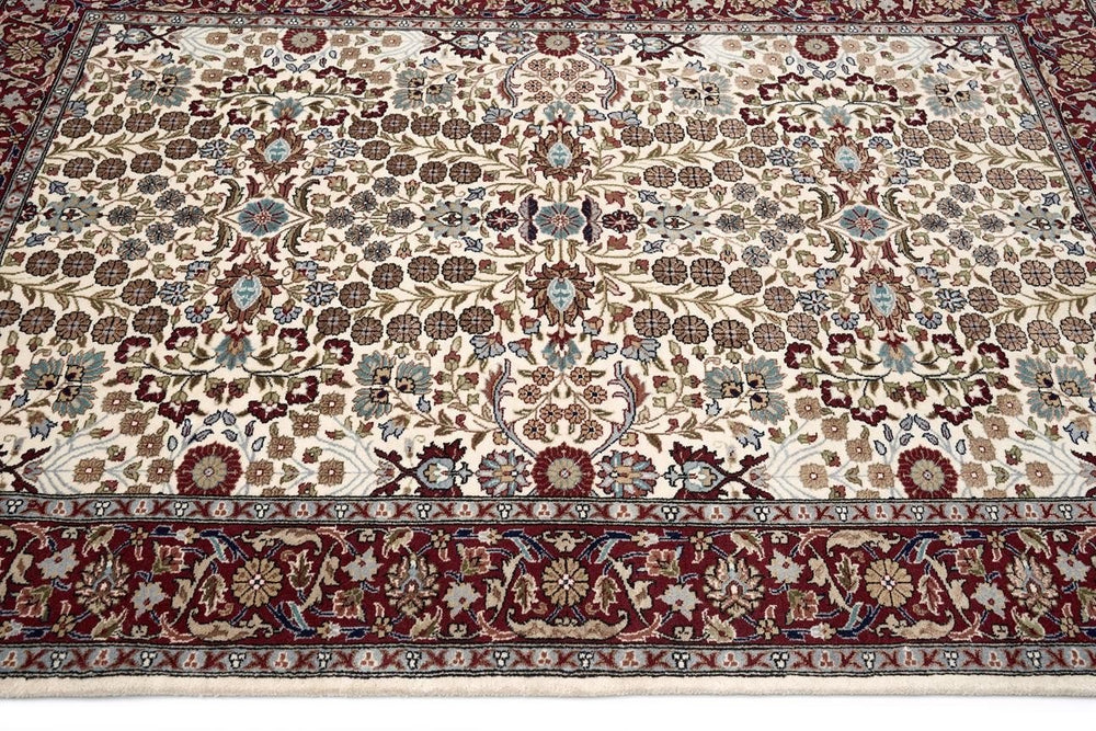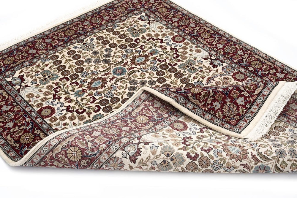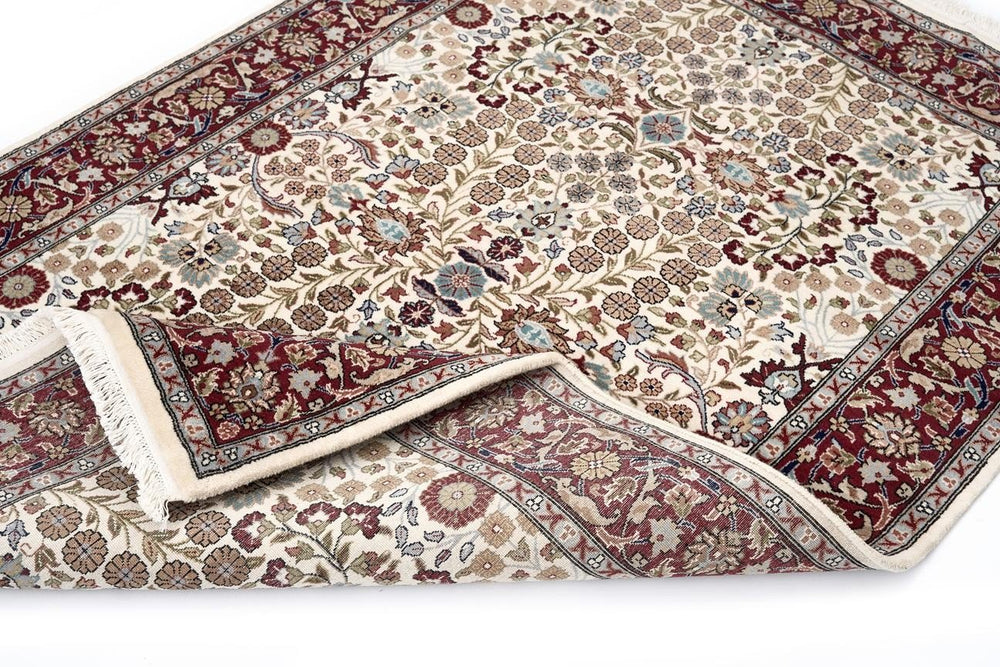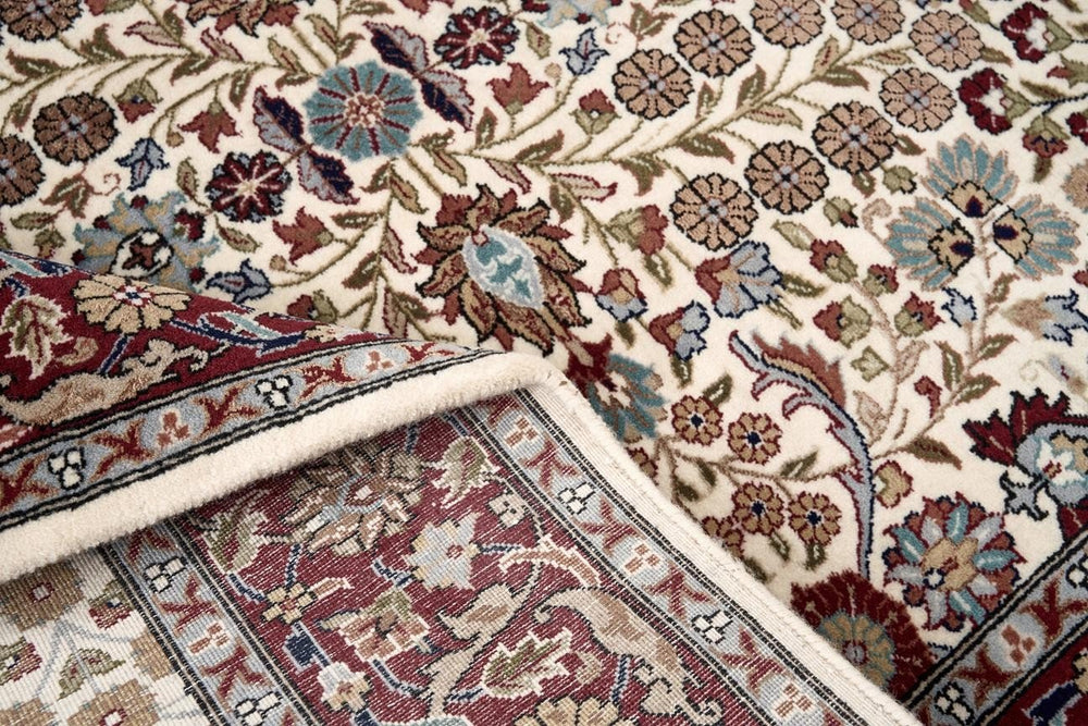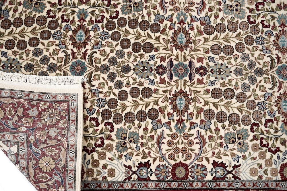 Öğretmenler Halı El Dokuma Şark Hereke ÖÇŞH633 modeli, özenle üretilmiş %100 kök boya kullanılarak hazırlanan ve yün ile pamuk karışımından yapılan kaliteli bir halıdır. Renk olarak krem tonları öne çıkar, mekânınıza zarif ve sıcak bir atmosfer katar. Bu halı, geleneksel el dokuma teknikleriyle üretilmiştir ve 6-12 mm hav yüksekliği ile uzun süreli kullanım sağlar. Üstün dokuma sıklığı sayesinde dayanıklıdır ve desenlerindeki canlılık yıllarca ilk günkü gibi kalır. Düz saçak tasarımı ve dikkatli işçiliğiyle her ortamda şıklığıyla öne çıkar. Bu halı, özellikle oturma odası veya salon gibi geniş alanlarda kullanılabilecek mükemmel bir tercihtir. Eko Halı gibi dayanıklı modellerle uyum sağlar.