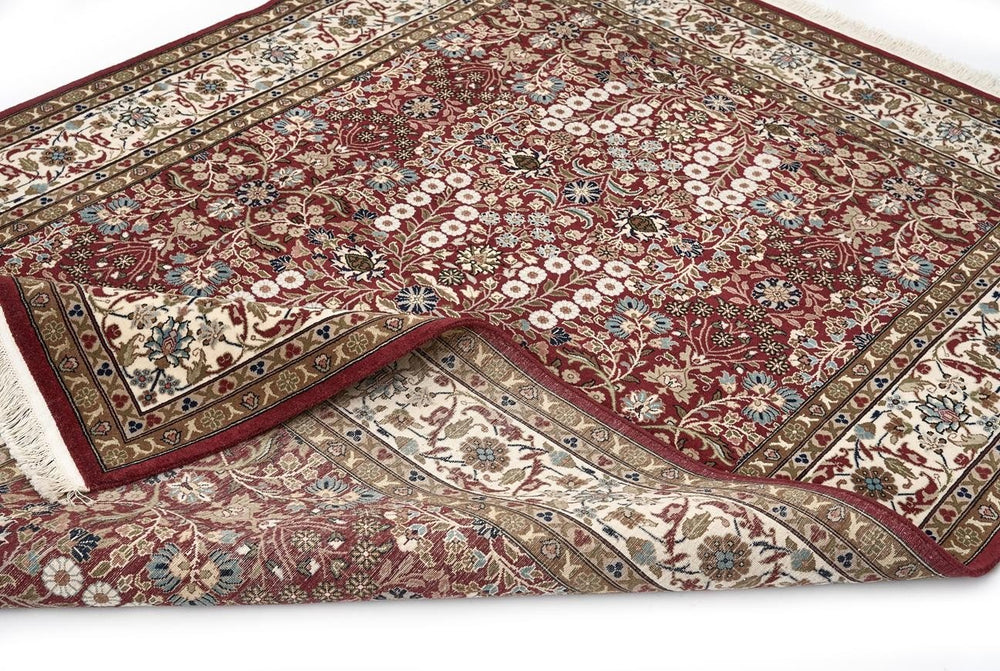 Bu halı, yün ve pamuktan üretilmiş olup dayanıklılığı ve doğal dokusuyla dikkat çeker. 6-12 mm arasında değişen hav yüksekliği, hem konforlu hem de şık bir kullanım sunar. Düz saçak detayı, minimalist bir şıklık arayanlar için idealdir. El dokuma sanatının mükemmel bir örneği olan bu model, Şark halıları arasında ayrıcalıklı bir yere sahiptir.