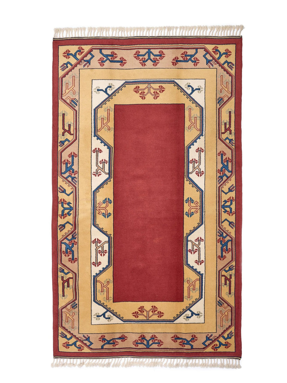 Öğretmenler Halı El Dokuma Halı Karyola Milas EH, vizon ve bordo tonlarının doğal uyumuyla mekânınıza zarif bir sıcaklık getirir. Bu renk kombinasyonu, hem modern hem de klasik dekorasyonlara kolayca uyum sağlayarak evinize sofistike bir hava katar. Dikdörtgen formu, her odada düzenli ve dengeli bir görünüm oluşturur. Bu halı, odanıza derinlik ve samimiyet kazandıran estetik bir parça olarak öne çıkar.
