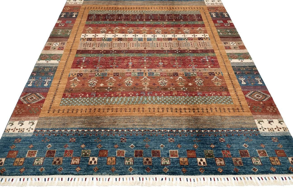 Çok renkli tasarımıyla dikkat çeken Öğretmenler Halı El Dokuma Kureyş Bahtiyari ÖAKB738, yaşam alanlarına estetik ve zarafet katıyor. El dokuma tekniğiyle üretilen bu halı, yün ve pamuk karışımı malzemesiyle uzun yıllar kullanılabilir. %100 kök boya kullanılarak elde edilen canlı renkler, halıyı daha da özgün kılar. 6-12 mm hav yüksekliğiyle rahat bir zemin sunar. Düz saçak yapısı, halının şıklığını tamamlar. Bambu Halılar ve Desen ve Tarza Göre Halılar gibi farklı seçenekleri inceleyerek, mekanınıza en uygun ürünü bulabilirsiniz. Bu halı, her türlü dekorasyona uyum sağlar.
