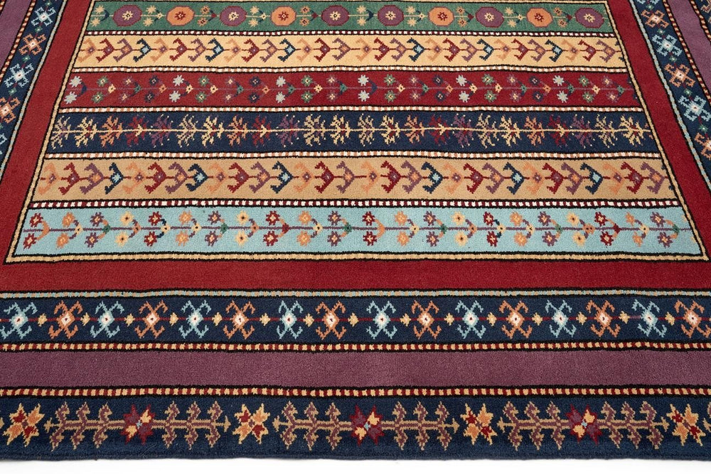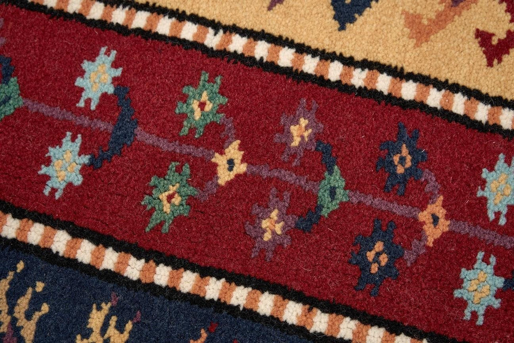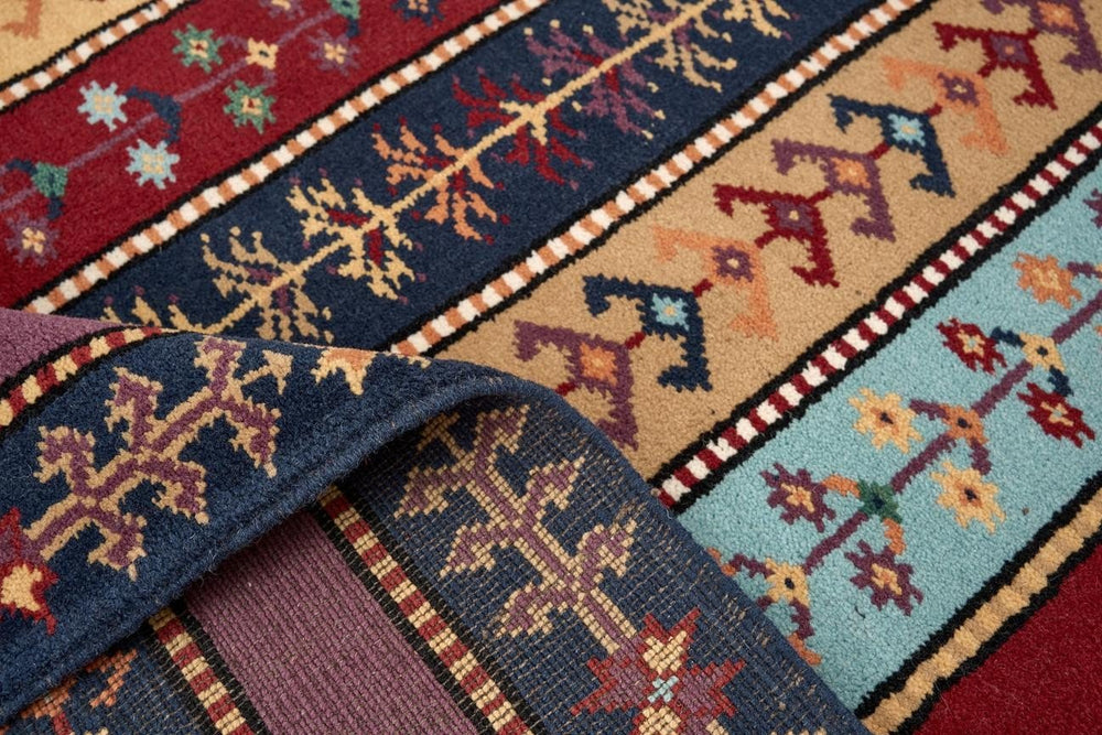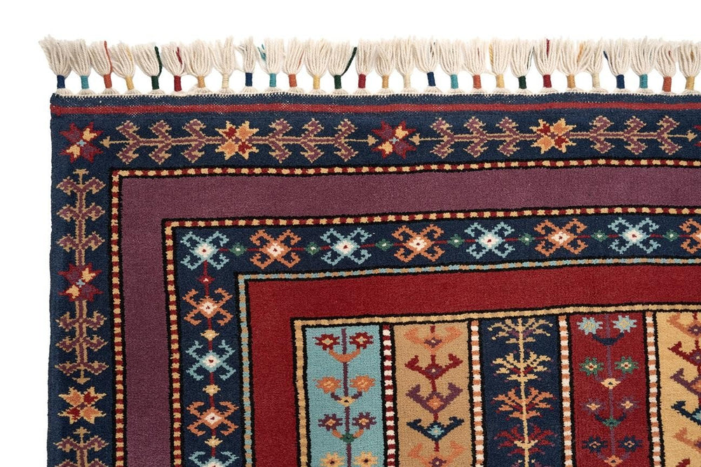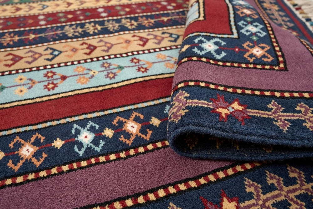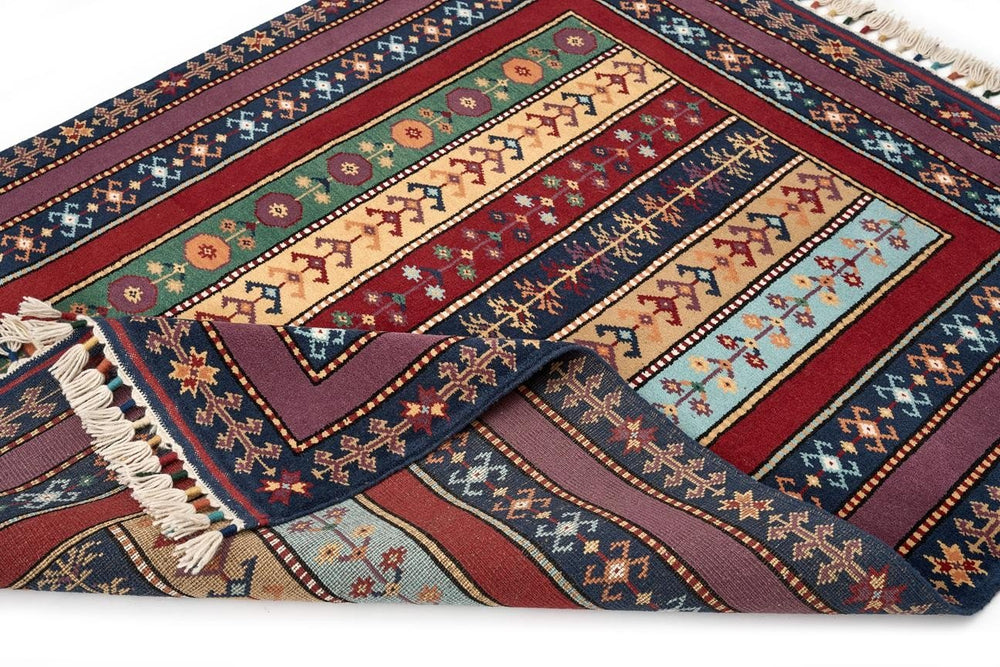 Öğretmenler Halı El Dokuma Şal İA ÖAŞİA753 modeli, zengin renk seçenekleriyle her tür dekorasyon tarzına uyum sağlar. Çok renkli desenlere sahip bu halı, yün ve pamuk karışımı malzeme ile el dokuma tekniğiyle üretilmiştir. %100 kök boya kullanılarak doğal ve sağlıklı bir renk elde edilmiştir. 6-12 mm hav yüksekliği ve 28-35 dokuma sıklığı, hem görsel hem de dokusal bir konfor sunar. Düz saçak tipi, halıya zarif bir görünüm katarken, dayanıklılığı uzun süre boyunca bozulmaz. Çeşitli renk tonlarıyla bezenmiş bu halı, özellikle antik Yörük halıları ve anadolu halıları ile uyum içinde kullanılabilir. El dokuma kalitesi ve kök boya kullanımı, halının özgünlüğünü ve sağlamlığını garanti eder.