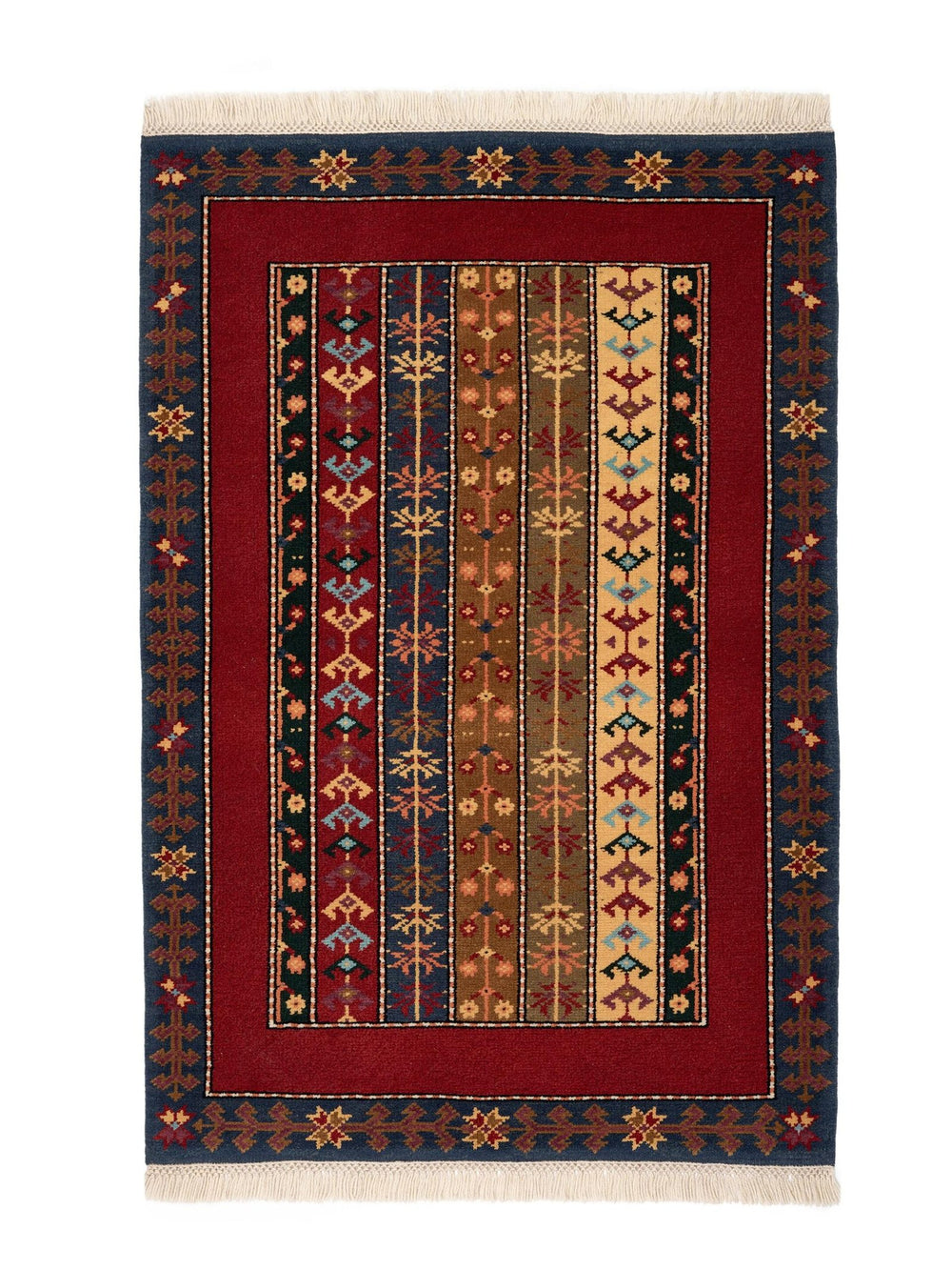 Halı, %100 yün ve pamuk karışımından üretilmiştir. Bu özel materyal, halının hem sıcak tutma hem de nefes alma özelliklerini en üst düzeye çıkarır. Yüksek hav yüksekliği (6-12 mm) sayesinde, adım attığınızda yumuşak bir his verirken, zamanla deforme olmadan uzun yıllar boyunca kullanılabilme garantisi sunar. Ayrıca, dokuma sıklığı 28-35 ile dikkat çekmektedir; bu da halının dayanıklılığını artırırken, uzun süreli kullanımlarda bile estetik görünümünü korumasına yardımcı olur. Her bir dikişi özenle işlenmiş düz saçaklar, halının zarif bir tamamlayıcısı olarak, ona klasik bir hava katmaktadır.