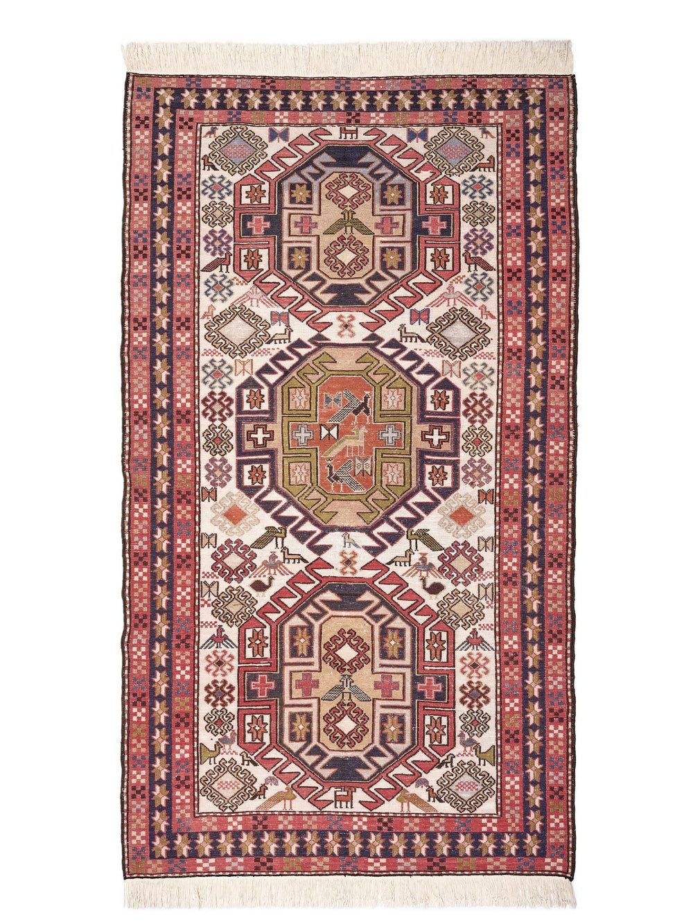 Öğretmenler Halı El Dokuma Seccade Sumak ÖDSS089, krem ve kırmızı renk tonlarında dokunan zarif bir halıdır. Yün ve pamuk karışımı malzemesi, dayanıklı ve konforlu bir kullanım sunar. %100 kök boya kullanımı sayesinde renkler solmaz ve uzun yıllar boyunca canlı kalır. 6-12 mm hav yüksekliği ve 28-35 dokuma sıklığı, halının her bir detayıyla özenle işlenmiş olduğunu gösterir. Düğüm saçakları, halıya geleneksel bir zarafet katmaktadır. Halınızda kaliteyi arıyorsanız, İran Halıları kategorisini inceleyebilirsiniz.