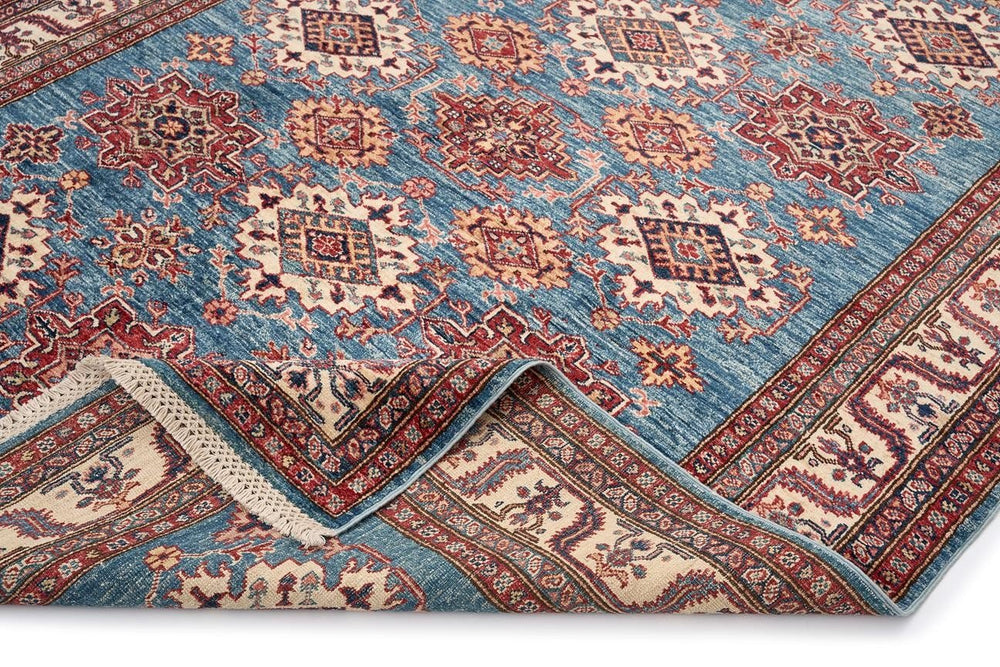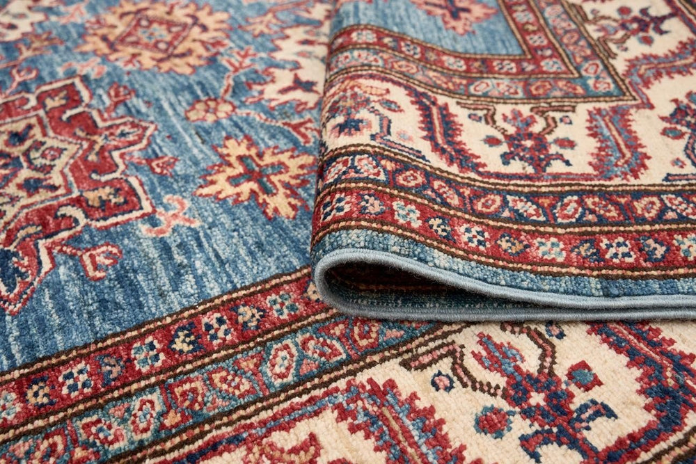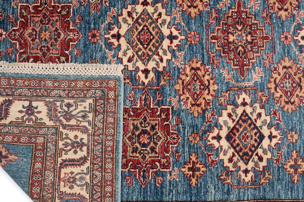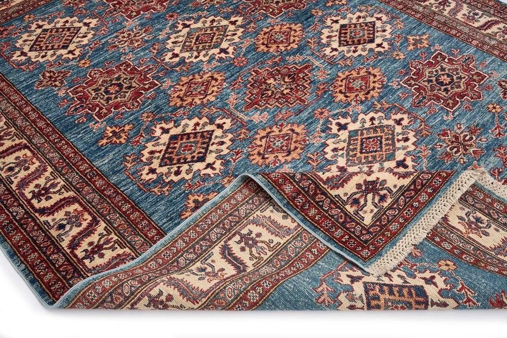 Öğretmenler Halı El Dokuma İnsaf Şirvan, mavi tonlarıyla her mekana zarif bir görünüm kazandırır. %100 kök boya ile üretilmiş olan bu halı, yün ve pamuk karışımından yapılmıştır. 6-12 mm hav yüksekliği ve 28-35 dokuma sıklığı sayesinde rahatlıkla kullanabileceğiniz dayanıklı bir üründür. Saçak tipi düz olan bu halı, el dokuma sanatının en güzel örneklerinden biridir. Mavi ve geleneksel dokusu ile şıklığı ve estetiği bir arada sunar. Eğer tarzınızı tamamlayacak farklı seçenekler arıyorsanız, Yün Halı ve İran El Dokuması sayfalarına göz atabilirsiniz.