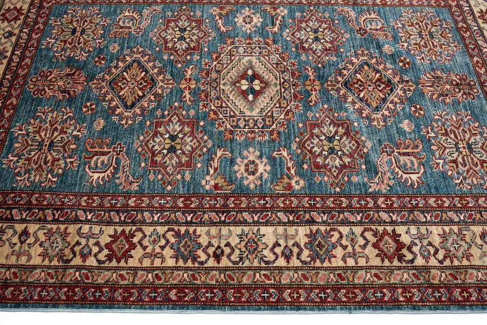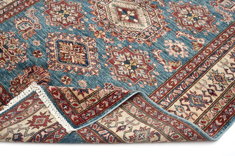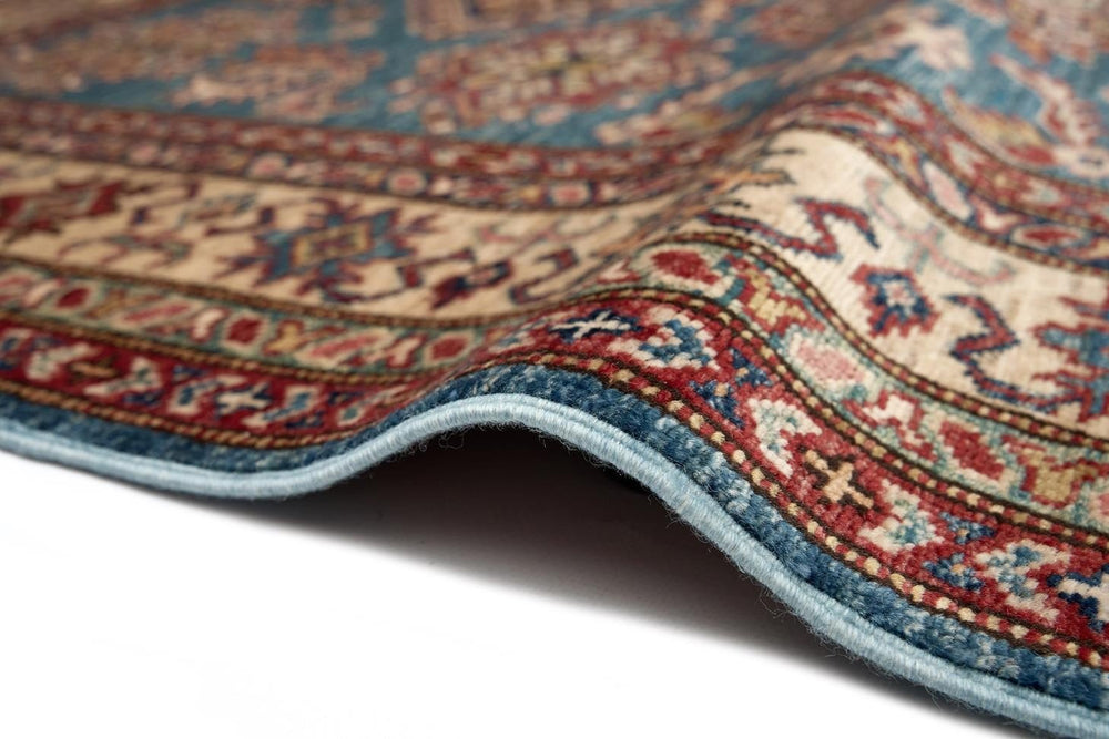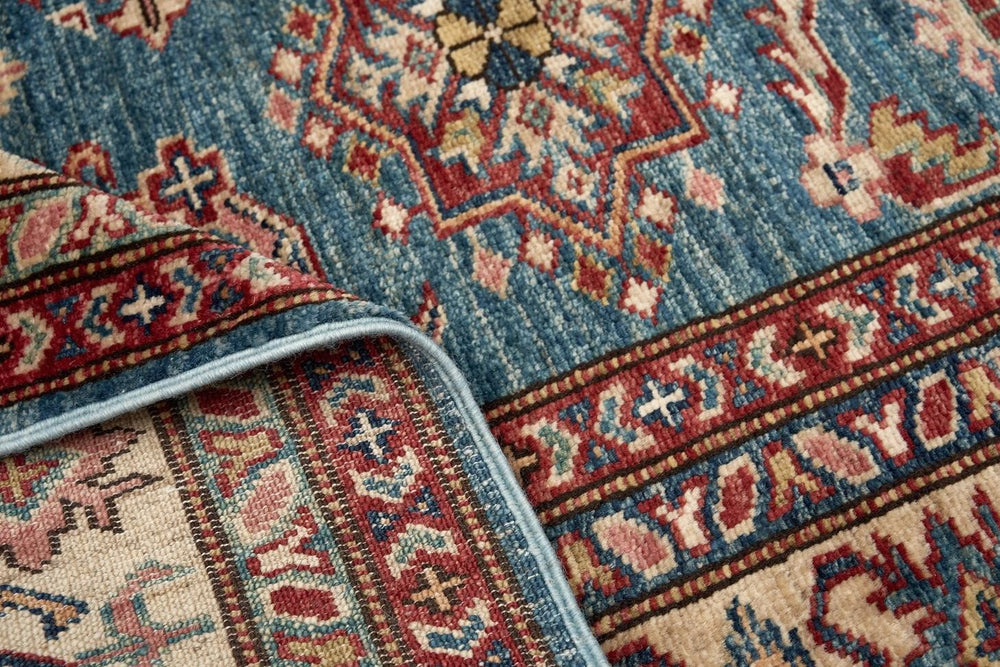 Öğretmenler Halı El Dokuma İnsaf Şirvan ÖDİŞ345, mavi tonlarıyla ferahlatıcı bir atmosfer yaratır. %100 kök boya kullanımı, rengin kalıcılığını sağlar. Yün ve pamuk karışımı malzeme, dayanıklı ve konforlu bir kullanım sunar. 6-12 mm hav yüksekliği, rahat bir yüzey sağlar. Saçak tipinin geleneksel işçiliği yansıttığı bu halı, Mavi Halılar ve El Dokuma Halılar kategorilerinde şık bir seçenek olacaktır.
