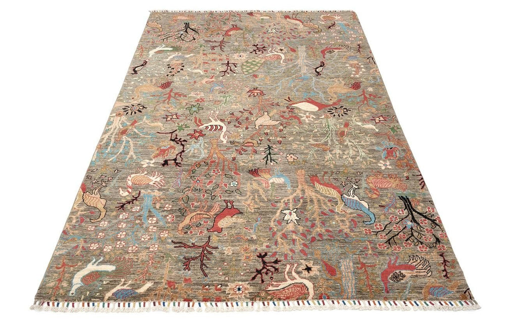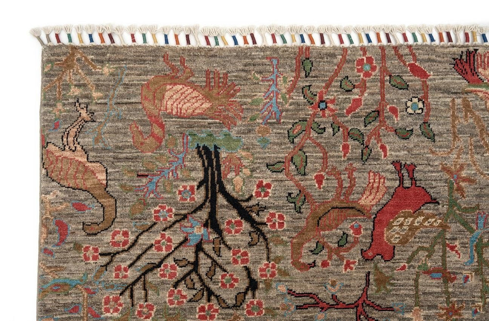 Halı, %100 kök boya kullanılarak üretilmiştir. Kök boyalar, halının doğal bir şekilde boyanmasını sağlar ve renklerin canlılığını uzun süre korur. Bu özellik, halının hem estetik açıdan hem de işlevsel açıdan uzun yıllar kullanılabilir olmasına katkı sağlar. Halının kahverengi tonları, her tür iç mekana uyum sağlar ve odanıza sıcaklık katar. Kök boyaların kullanımı, çevre dostu bir üretim süreciyle halının tasarımını tamamlar. Bu nedenle, hem sağlıklı hem de estetik bir ürün elde edilir.