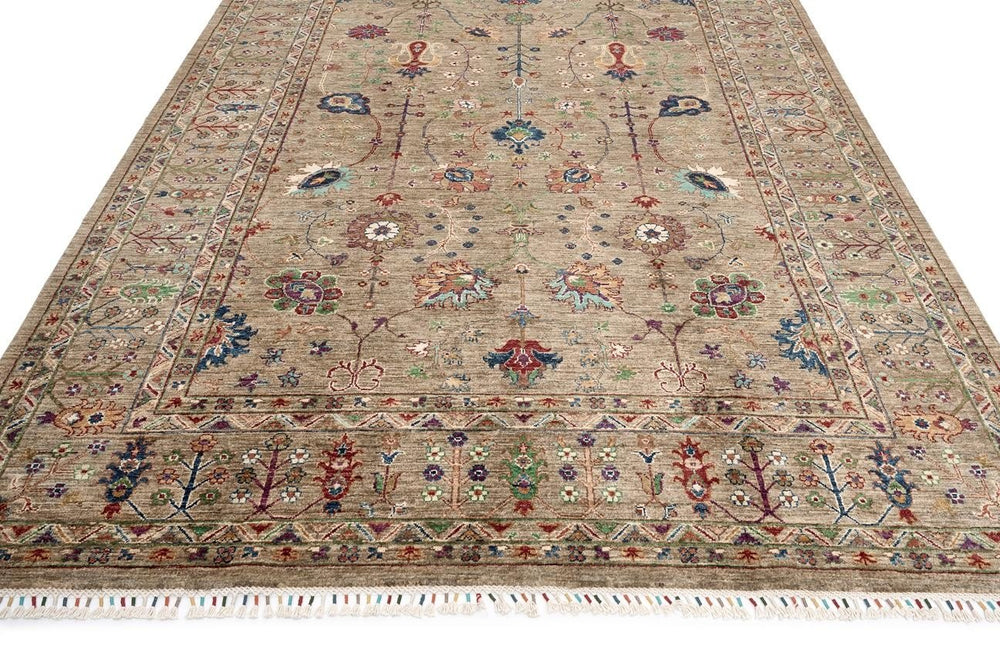 Öğretmenler Halı El Dokuma İnsaf Sultani halısı, yüksek kalite yün ve pamuk karışımı materyaliyle uzun yıllar kullanabileceğiniz bir üründür. %100 kök boya kullanılarak üretilmiş bu halı, kahverengi tonlarıyla iç mekanlarınıza sıcak bir hava katacaktır. Yüksekliği 6-12 mm arasında olan hav yapısı, yumuşak bir dokunuş sağlar ve üst düzey konfor sunar. Dokuma sıklığı 28-35 arasında olup, detaylı işçiliğiyle dikkat çeker. Halı, örgü saçaklarıyla da estetik bir görünüm sergiler. El dokuma halılar ve sultani halıları sevenler için mükemmel bir tercihtir.