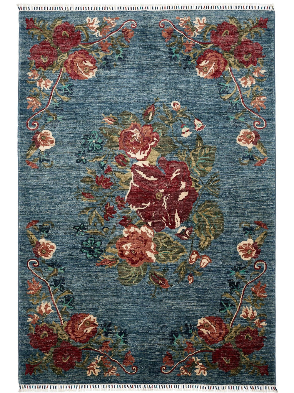 Yün ve pamuktan üretilen bu halı, doğal liflerin sunduğu dayanıklılık ve yumuşak dokuyu bir araya getirir. Yünün sıcak ve güçlü yapısı ile pamuğun hafifliği birleşerek, halıya hem uzun ömürlü hem de konforlu bir yapı kazandırır. Bu doğal malzemelerden oluşan yapı, halıyı yalnızca estetik bir dekor unsuru değil, sağlıklı ve çevre dostu bir seçenek haline getirir. Mavi ve bordo tonlarının uyumlu birlikteliği, mekâna sofistike ve etkileyici bir hava katar.