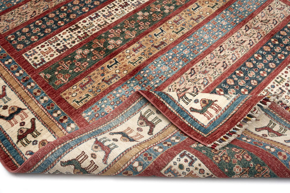 Öğretmenler Halı El Dokuma İnsaf Sultani ÖDİS352, zarafeti ve işçiliğiyle dikkat çeker. Bu halı, kök boya kullanılarak el işçiliğiyle dokunmuş ve çok renkli bir desene sahiptir. Yün ve pamuk karışımı, halının hem estetik hem de dayanıklılık açısından üst düzey olmasını sağlar. 6-12 mm hav yüksekliği, halının hem konforlu hem de görsel olarak etkileyici olmasını sağlar. 28-35 dokuma sıklığı, desenlerin her detayını belirgin hale getirir. Düğüm saçakları, bu halıyı geleneksel bir dokunuşla tamamlar. Ayrıca, el dokuma kilimler ve sultani halıları gibi zarif koleksiyonlar da ilgisini çekenler için harika alternatifler sunar.
