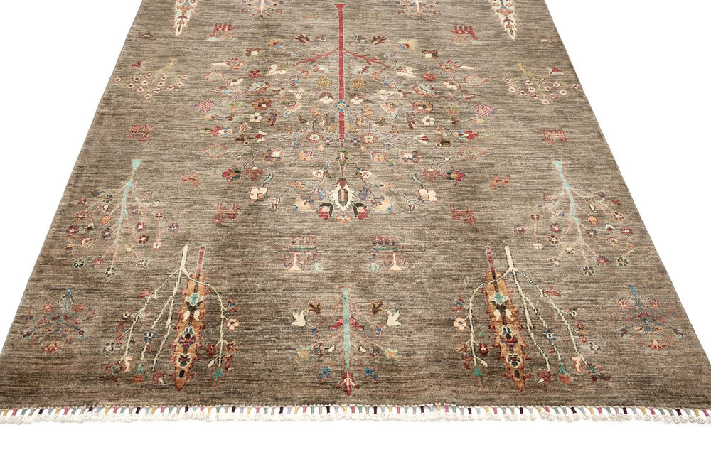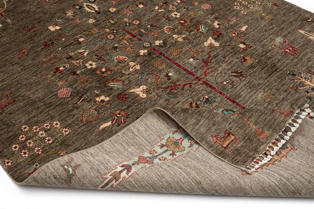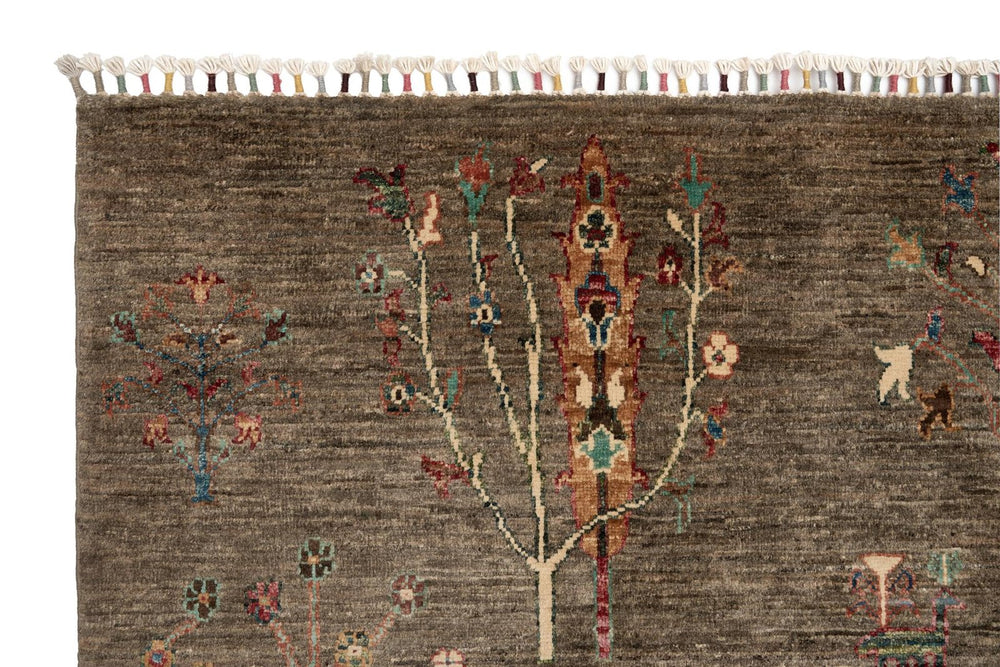 Bu halı, dikdörtgen şekli ve sade kahverengi rengi ile dikkat çeker. Halı, 6-12 mm arası hav yüksekliğiyle rahat bir kullanım sağlar. Dokuma sıklığı ise 28-35 arasında olup, dayanıklı bir yapı oluşturur. Düğüm saçak tipine sahip olması, geleneksel el dokuma halı özelliklerini taşır. Her bir detay özenle işlenmiştir.