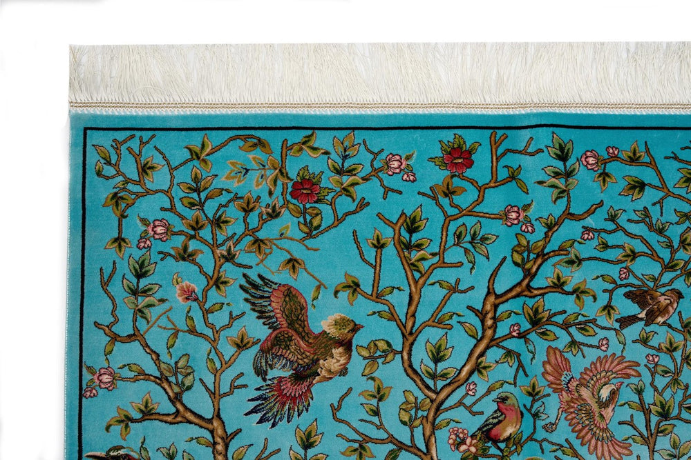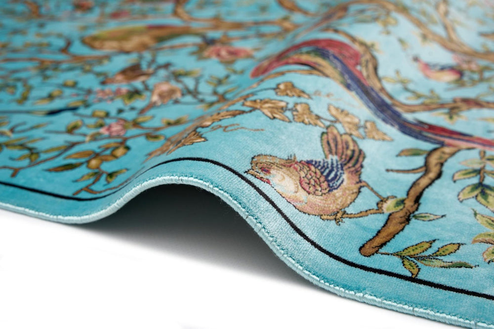 Öğretmenler Halı Tablo İran Makine ÖDİM492, mavi tonlarıyla huzurlu bir atmosfer yaratır. 3 mm hav yüksekliği ve yüksek dokuma sıklığı ile dayanıklı ve uzun ömürlüdür. Akrilik ve viskon malzemesi, halıya yumuşak bir dokunuş sağlar. Makine üretimiyle elde edilen bu halı, kolay bakım özelliğiyle de tercih edilmektedir. Şıklığından ödün vermeyen bu ürün, özellikle modern dekorasyonlar için harika bir tercihtir. İpek saçak detayı, halının zarifliğini artırır. Anadolu halıları ile uyumlu bir seçenek arayanlar için mükemmeldir. Bu halı, gri halılar ve salon halısı kategorilerindeki ürünlerle kombin edilebilir.