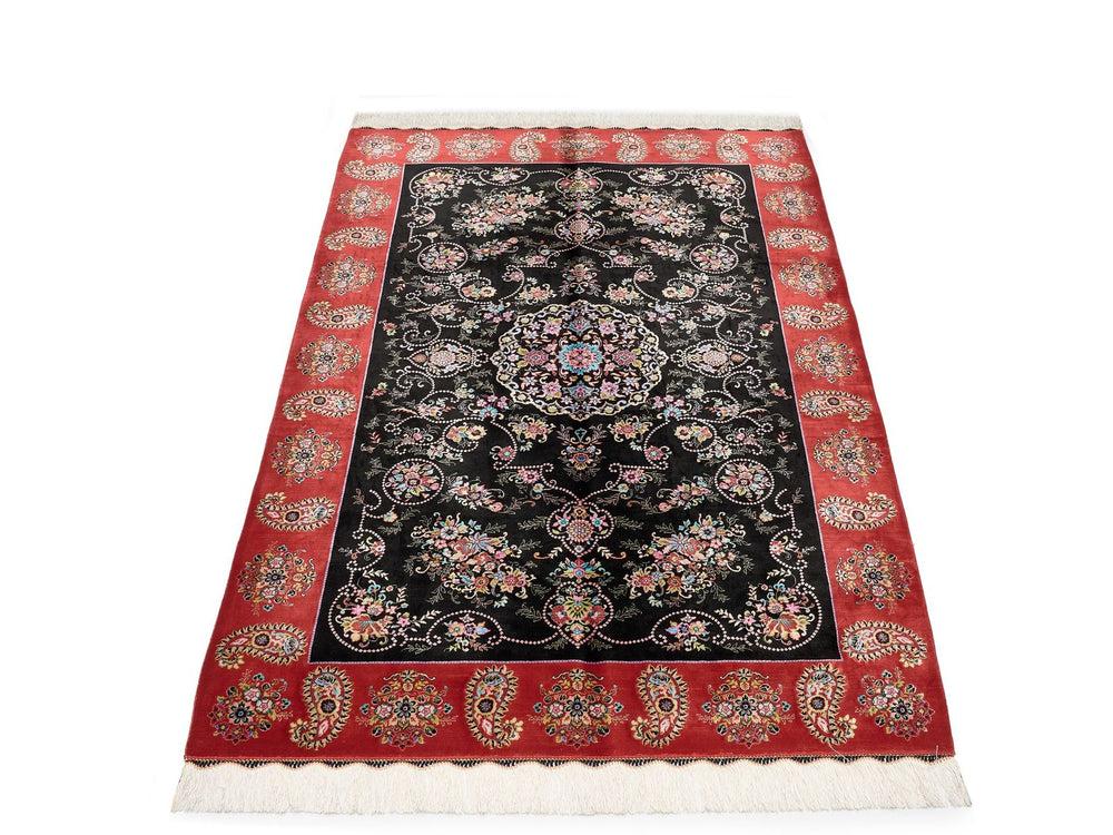 Öğretmenler Halı Tablo İran Makine ÖDİM496, siyah ve kırmızı tonlarının etkileyici birleşimiyle tasarlanmış şık bir halıdır. Akrilik ve viskon malzemeleri kullanılarak üretilen bu halı, dayanıklı ve uzun ömürlüdür. 3 mm hav yüksekliğiyle rahat bir kullanım sağlar. 3.000.000 PTS dokuma sıklığı sayesinde yoğun kullanımda bile formunu korur. Halının ipek saçakları, estetik açıdan şıklık katarken, makine dokuma teknolojisi sayesinde hem kalite hem de uygun fiyat sunar. Makine halıları ve İran halıları koleksiyonları, bu tasarıma benzer zarif seçeneklerle doludur.